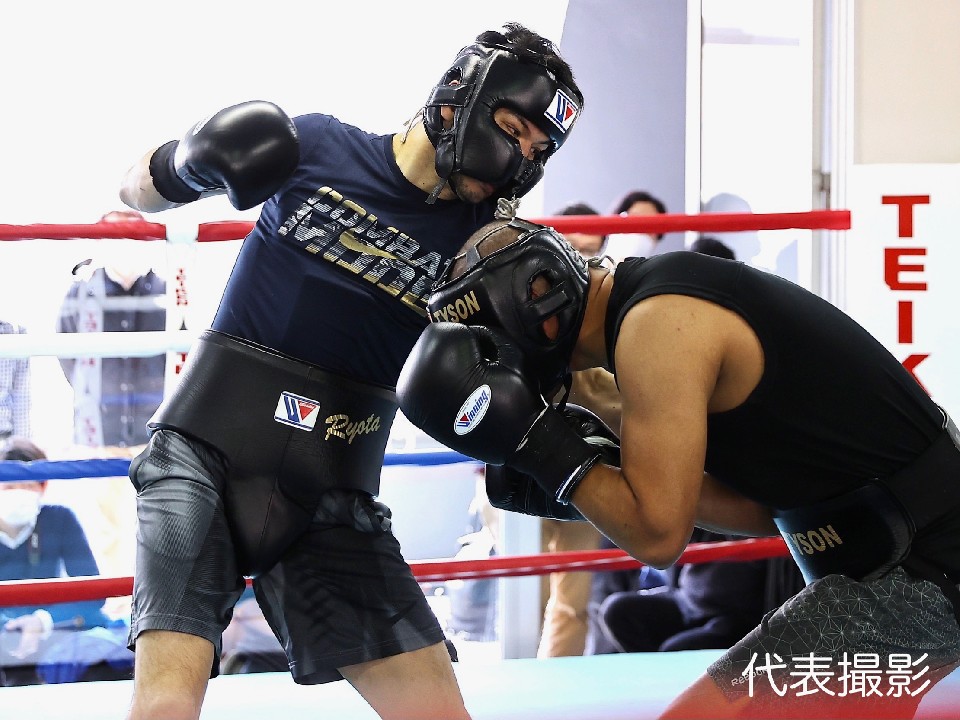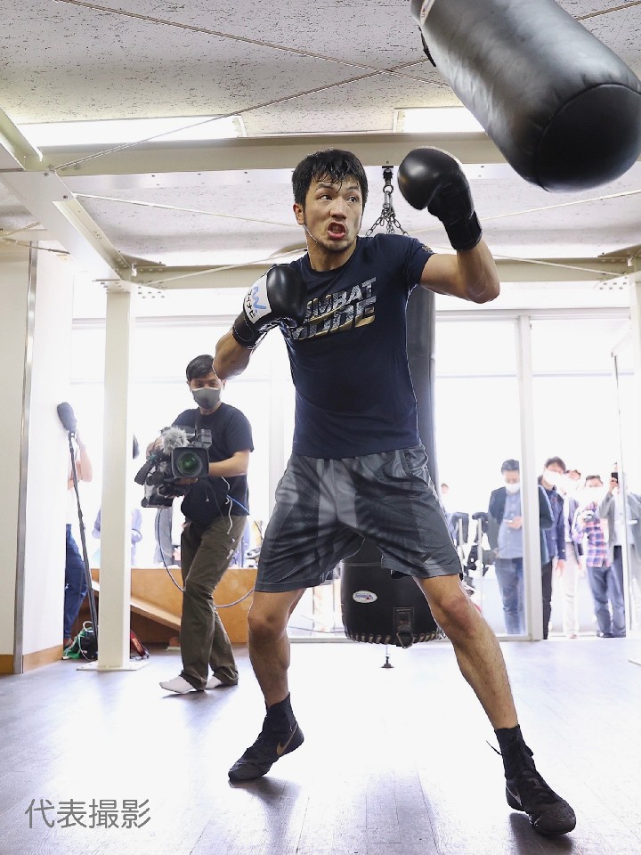 ルナとのスパーリングでは、重厚なプレスをかけて左ボディを好打。上下に打ち分けると返しのパンチをしっかりとブロックした。攻防のバランスの良さが目を惹いた。2ラウンド目もジリジリと距離を詰めて右ストレートをねじ込み、ルナを後退させて世界王者の力を示した。サンドバッグ打ちではフォームを確かめながら、力強いパンチを叩き込んでいた。