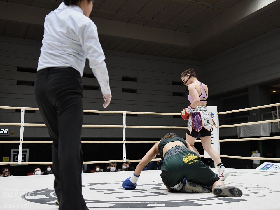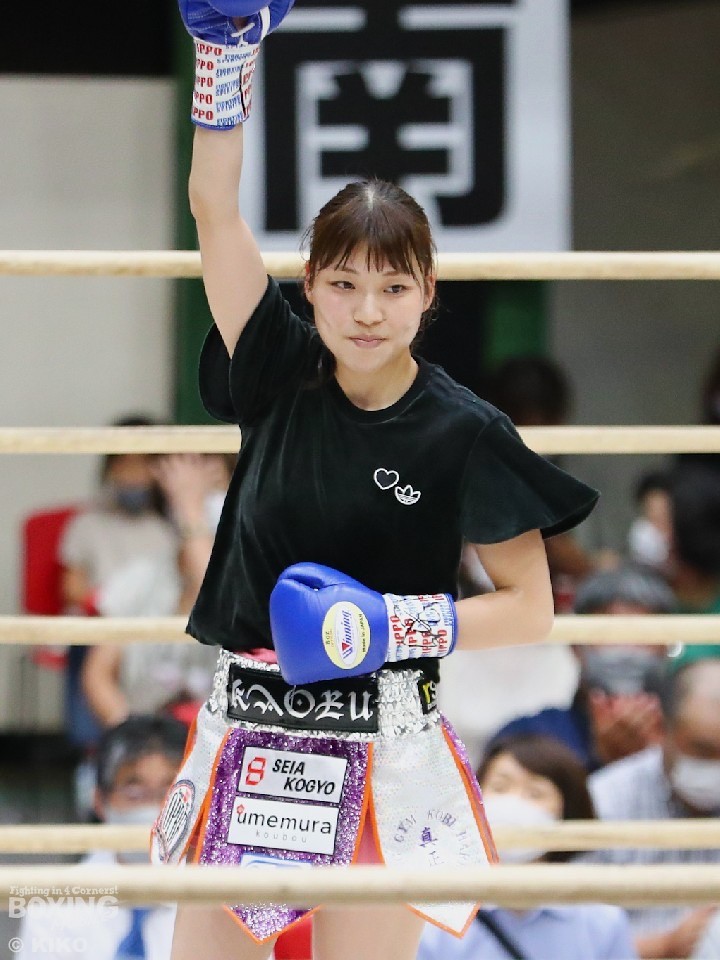 日本アトム級王座は、同門の長井香織(32)が保持していたが長井が王座を返上していた。伊賀は「長井さんが持っていたベルトを、また真正ジムに持ち帰る」と意気込んだ。