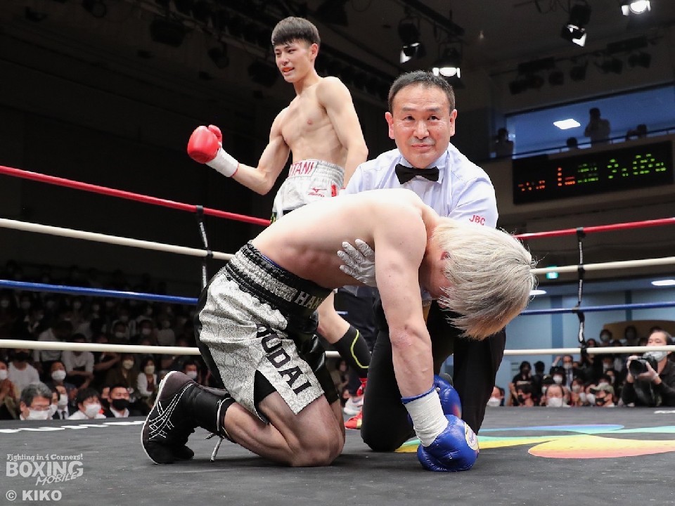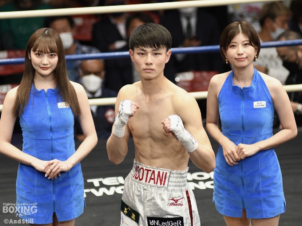 輪島功一氏の孫の磯谷のプロ第2戦。初回、激しい打ち合いを予感させた矢先、30秒足らずで磯谷が鋭いワンツーをヒットをしてダウンを奪った。なんとか立ち上がった細谷は、距離を取りダメージを抜こうとするが、距離感抜群に伸び切った磯谷のボディストレートがヒットし、2度目のダウンを喫すると、10カウントが数えられてKO決着。祖父の輪島氏が見守る中、デビュー戦から2戦連続で初回KO勝利を収めた磯谷の将来性に期待を寄せる観客からの大きな拍手が会場に鳴り響いた。