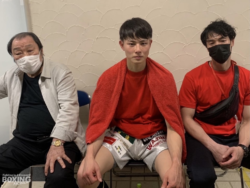 次戦への期待を寄せる見事なKO勝利を飾り、終始和やかな雰囲気で囲み取材に応じた磯谷。試合開始54秒KO勝利に関して、「序盤から飛ばしすぎてしまい、お父さん(磯谷和広氏)に怒られる」と笑顔を見せた。「長いラウンドを冷静に、落ち着いて戦って最終ラウンドで倒すように」と和広トレーナーに指示されていた磯谷だが、弱らせる為に放ったボディストレートが思わず力んでしまい、クリーンヒット。思わぬKO勝利に「気持ちに余裕がなく、リングに上がったらやらなきゃやられるとの思いが先に立った。結果は喜べるが、やりたいことが出来ずに、まだまだ未熟です」と課題が口をついた。