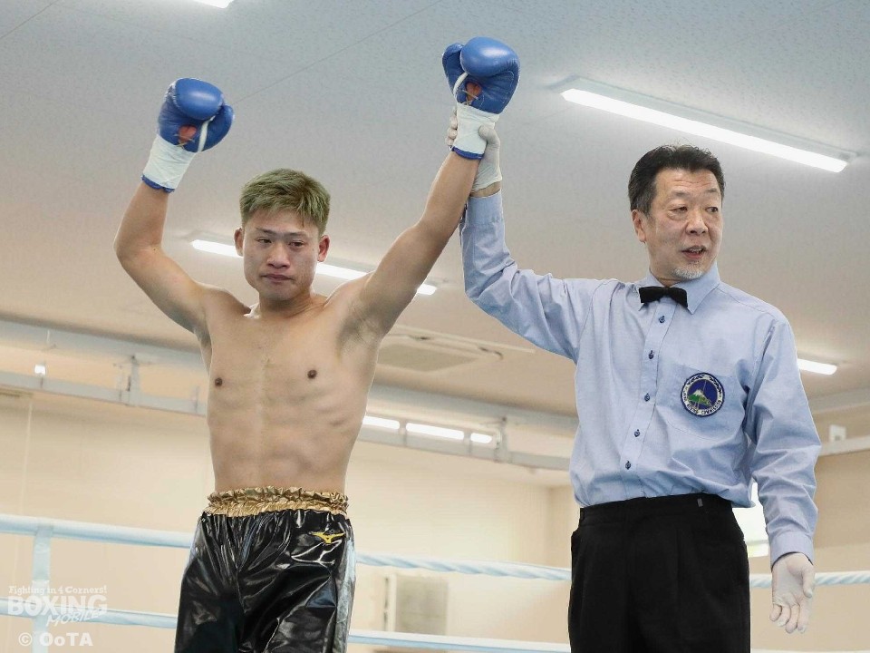 西部日本新人王に輝いた樋口は「まずは安心しました」と笑顔を見せた。「懐の深い相手なので距離を取ってくるかと思ったが、思ったよりは前に出てきた。1分過ぎた頃から距離が掴めたので、2ラウンドからギアを上げて前に出た」と振り返った。