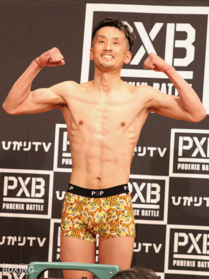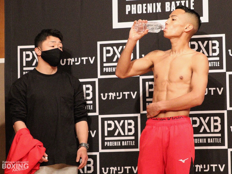 元K-1ワールドグランプリ・スーパーバンタム級王者の武居由樹(25=大橋)と日本同級16位の河村真吾(31=堺春木)が21日、横浜市内のホテルで前日計量に臨み、武居はスーパーバンタム級リミットを100g下回る55.2kg、河村はリミットちょうどの55.3kgでクリアした。