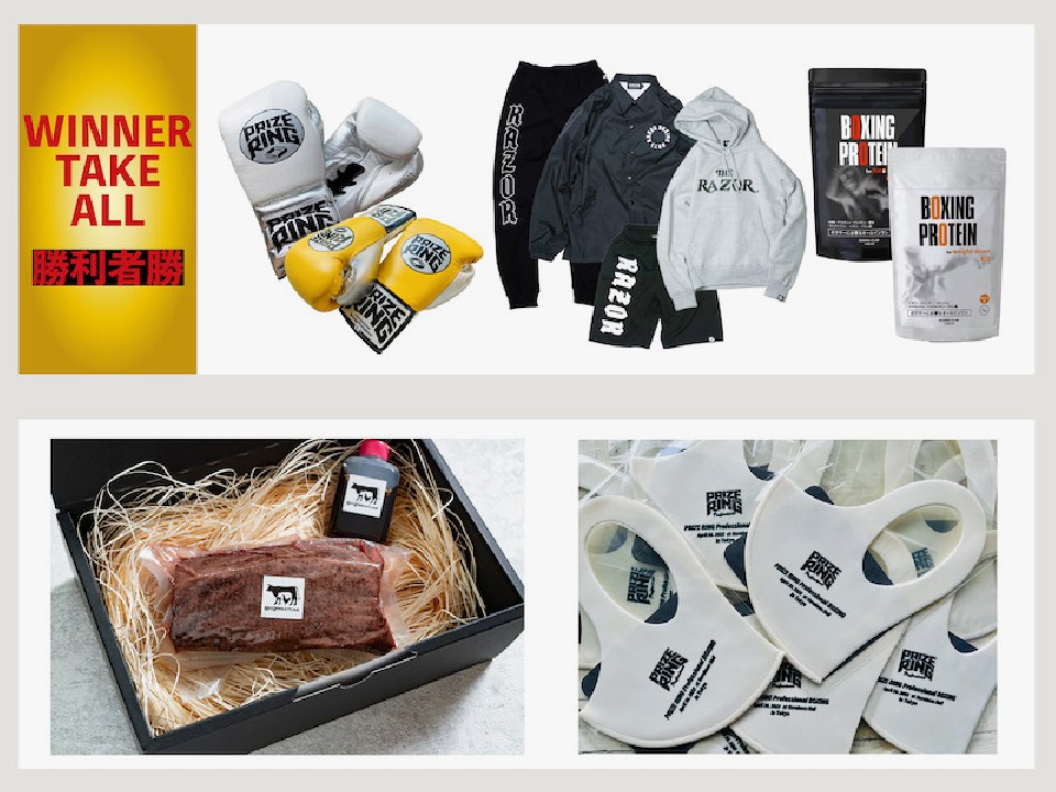 この日は勝利者賞として、興行をスポンサードするプライズ・リング・スポーツからトレーニング・グローブ、ボクシング・プロテイン、ボクシング・アパレル・ブランド「RAZOR」からトレーニングウェアが送られる。