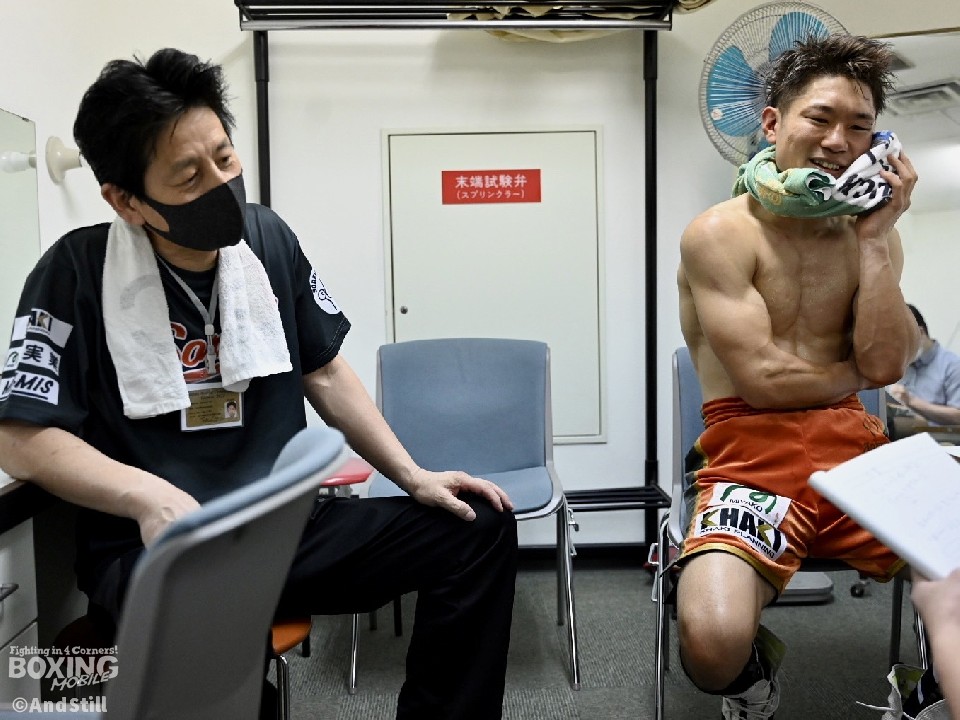 5ラウンドにパンチを浴びて、左顎を痛めたようで「美味しいものを食べて帰ろうと思ったが、顎が痛いので厳しそうですね」。大阪での食事は、またの機会になりそうだが、最高の一日になった。