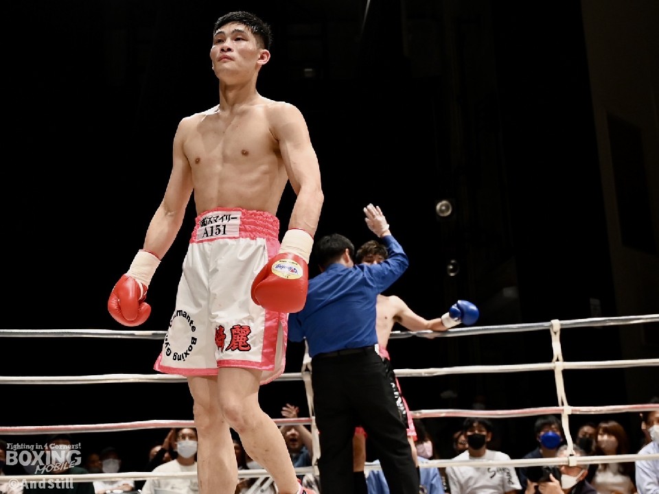 サウスポー大城の左ストレートを浴びた安村だが、2回になるとジャブからワンツーを好打しペースを掌握。さらにボディにパンチを集めて大城の体力を削っていった。リズムを取り戻した安村は、スイッチを織り交ぜながら豊富な手数で攻め立てると、4回にボディ攻撃でレフェリーストップに持ち込んだ。