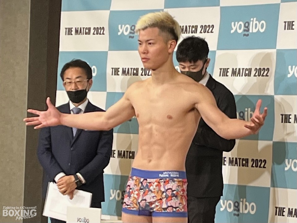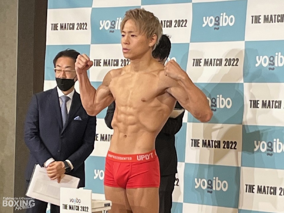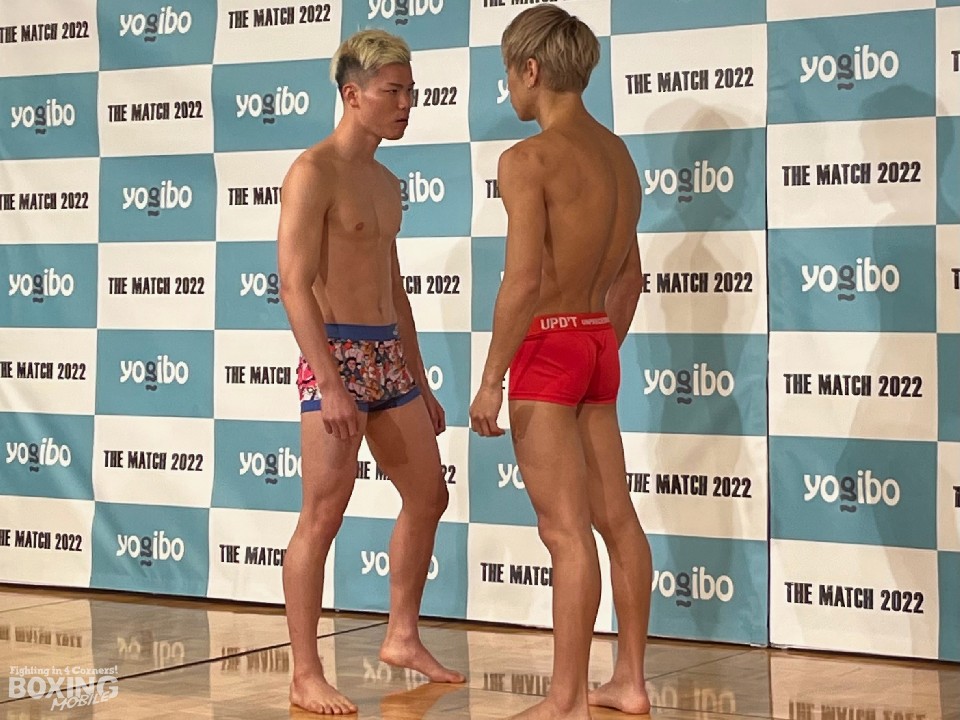 東京ドームで開催される「Yogibo presents THE MATCH 2022」で対決する、RISEフェザー級チャンピオン那須川天心(23)とK-1スーパーフェザー級チャンピオンの武尊(30)が18日、東京ドームホテルで前日計量を終えた。この試合は、58.0kg契約3分3ラウンドの特別キックボクシング(以後、キック)ルールで行われる。3ラウンドで決着がつかない場合は、1ラウンドの延長戦が行われる。