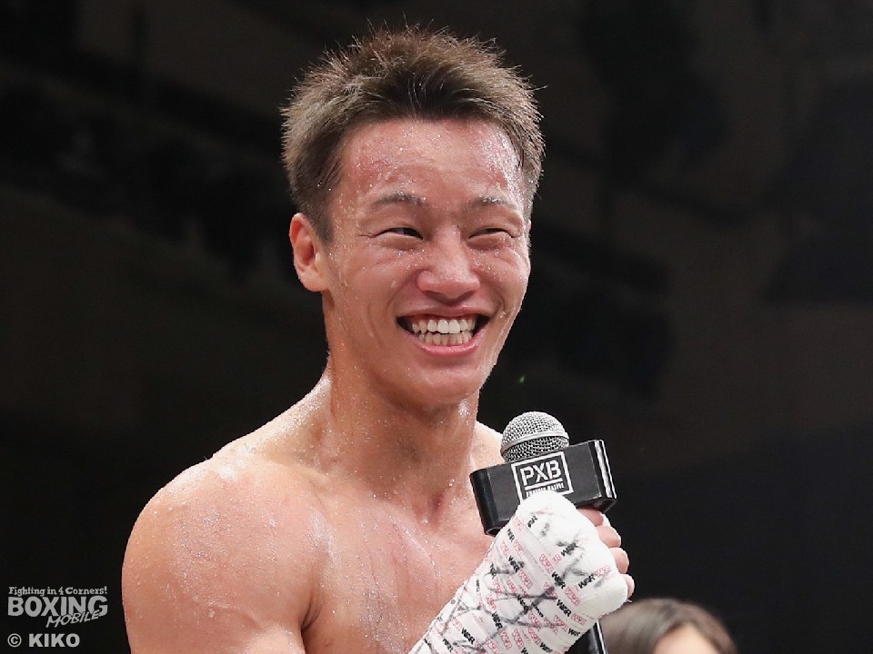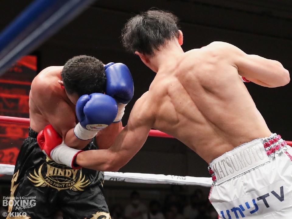 第5試合58.0s契約8回戦では、日本フェザー級12位の松本圭佑(22=大橋)が、ナクハリン・ハンギュ(19=タイ)と拳を交えた。開始早々、左ボディで相手の動きを止めた松本は、コーナーに追い込むと、怒涛の連打でフィニッシュした。