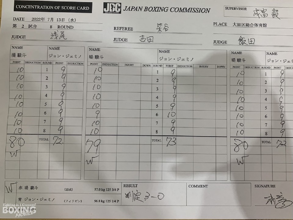 アマチュア実績も歴代トップクラスの堤は、プロのリングが気に入ったようで、「得意の前の手のジャブ、右のカウンターを決められた 。8オンスは、見えないパンチで倒れる。それを貰わないようにした。効いたパンチはないが、ガードの上からでも重かった。アマとプロの違いを感じた。コンビネーションをもっと当てたかった。試合中、アドレナリンが出て、楽しくなって笑うクセが出た。自分の距離で戦う意識、それは出来た。スタミナは、中盤に様子を見れて大丈夫だった。アマの早いテンポより、プロのテンポの方が自分に向いている。応援の声、攻めてない時の静けさなどの音の世界に身を置いて、プロになったなと思った」