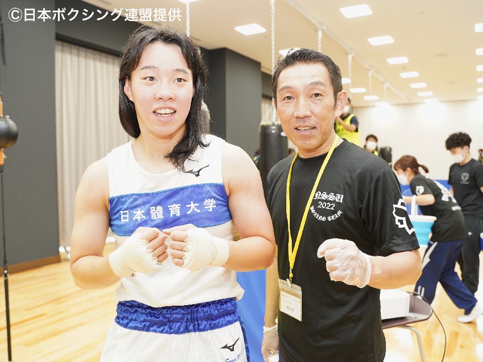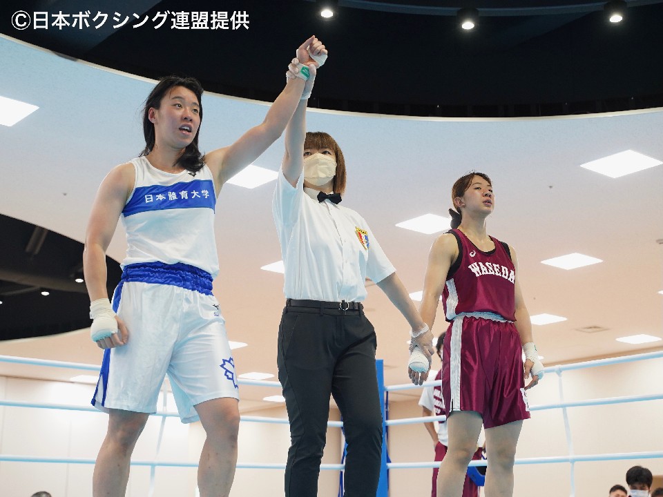 令和4年度「関東大学ボクシング女子トーナメント戦・決勝戦」が17日、神奈川県立スポーツセンター・ボクシング場で行われ、東京オリンピック2020金メダリストの入江聖奈(日本体育大学)が、普段よりも2階級上のライトウエルター級決勝に出場、高橋美波(早稲田大学)から5―0の判定勝ちを収めて優勝した。