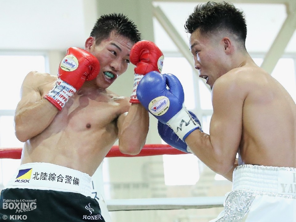 日本ユース・フェザー級タイトル戦が30日、石川県の内灘で開催された。この日の会場となった内灘町総合体育館は、チャンピオンの英洸貴(23=カシミ)が通った中学校と隣接している。凱旋試合で初防衛に臨んだ英に挑んだのは、高橋利之(22=KG大和)。勝負のカギは、初回開始早々のジャブの差し合いの次の一手にあった。