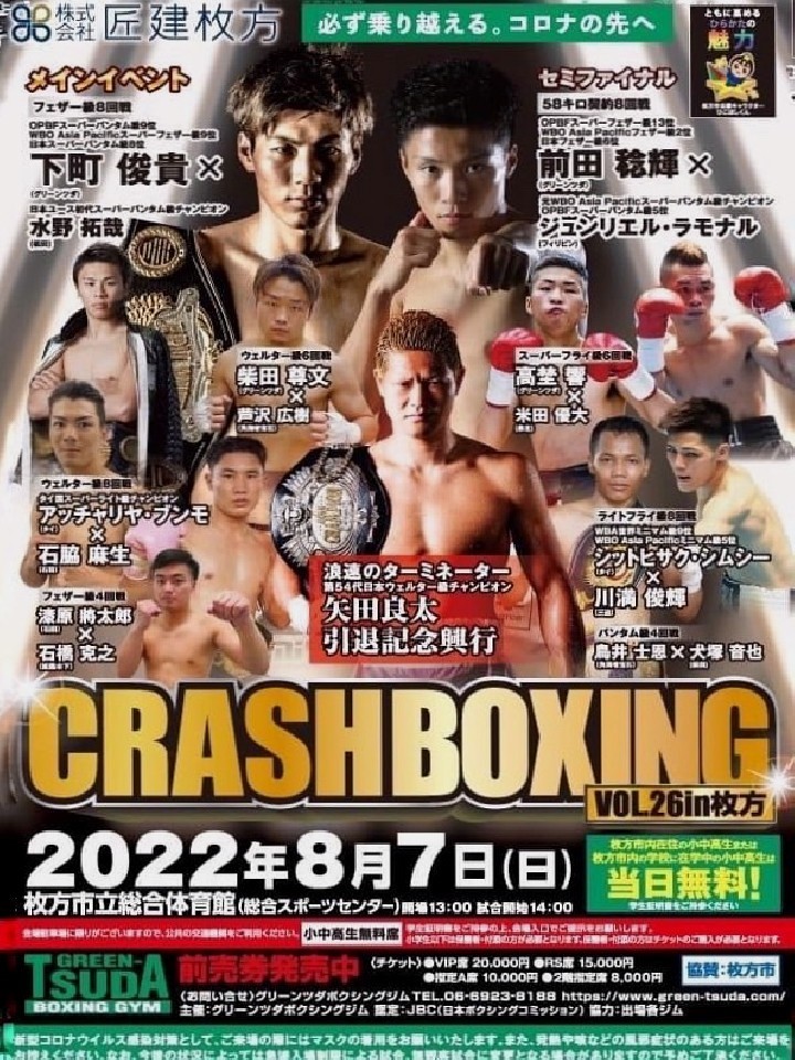 両者は、明日(7日)に大阪枚方市総合体育館で開催される「CRASH BOXINGvol.26in矢田良太引退記念興行」のメインイベント、フェザー級8回戦で対戦する。