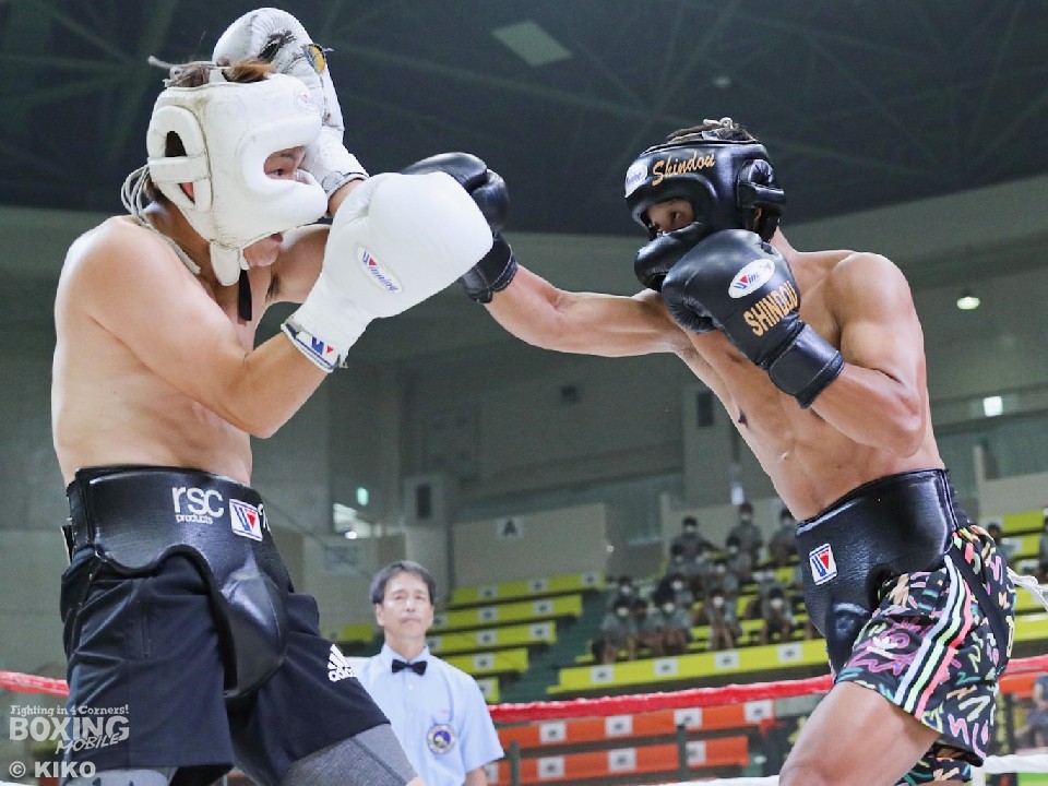 真道がジャブから左ボディにつなげると、森本の返しのパンチに冷静に対応。何度か右ストレートを浴びる場面もあったが、最後までアグレッシブにパンチを出し続けた。