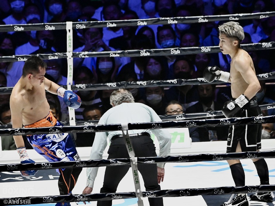 1ラウンドは「様子を見ようかなと思った矢先に、ドネアの左フックが右目下に入って来てドキッとした。衝撃だった」と、開始早々の相手の攻撃を振り返った。勝負を決定づけたラウンド終了間際のダウンについては「左ジャブを出さずに打った右。結果として、フェイントになり、それにドネアが反応してしまった」と分析した。