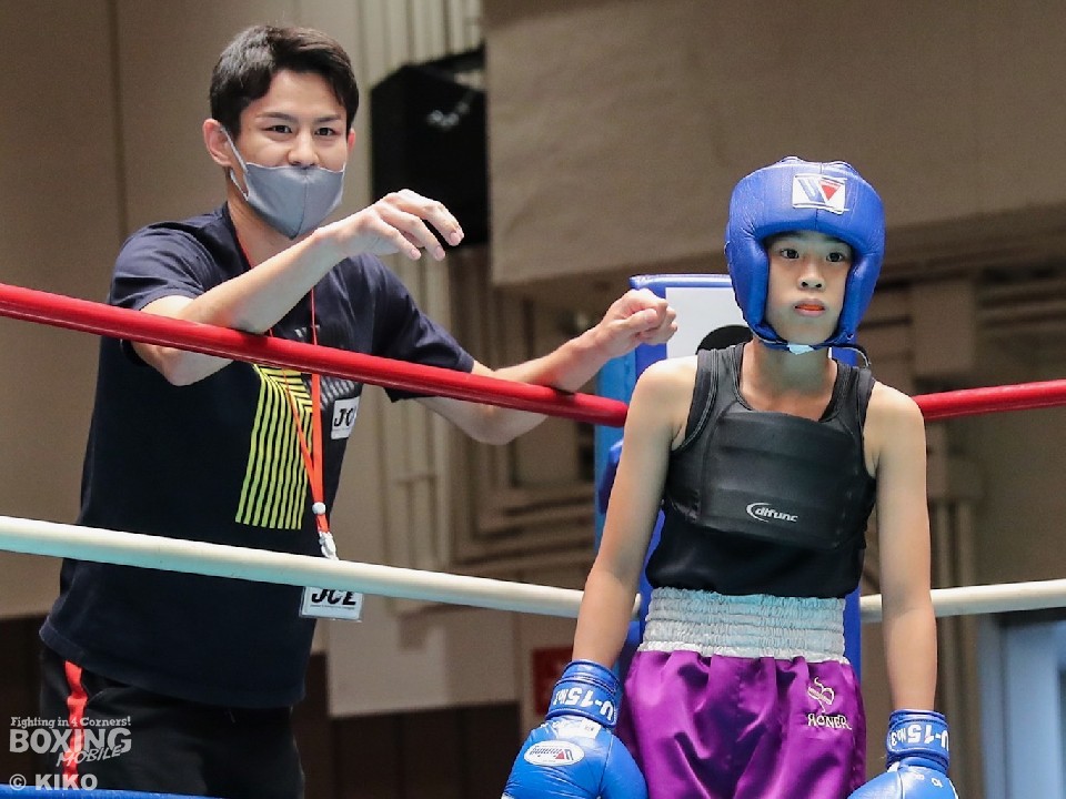 U9・U12女子の部ベストマナー賞を受賞したのは、前WBC世界ライトフライ級チャンピオン矢吹正道(緑)の長女、佐藤夢月(緑)さん。この日は、叔父でOPBFスーパーフェザー級チャンピオンの力石政法(緑)がセコンドについた。