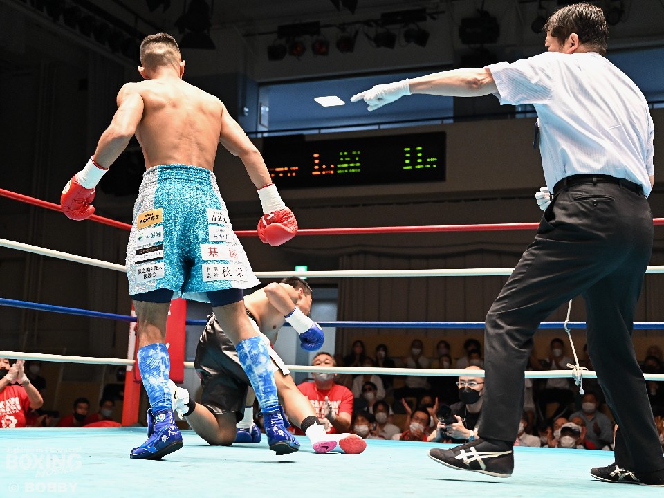 持ち前の強打で、これまで豪快に相手をなぎ倒してきた大野だが、この日は進化した姿を見せた。ジャブから組み立てた大野は、「練習していた」というタイミング抜群の右アッパーで、ダウンを演出。前のめりに倒れた山本を見て、レフェリーは、ノーカウントで試合をストップした。