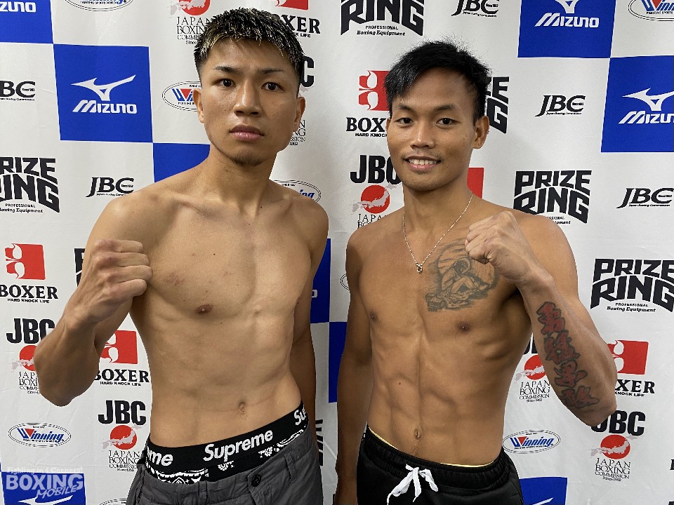 重里は、スーパーフライ級リミットを200g下回る51.9s、スマボンは、400gアンダーの51.7sでパスした。