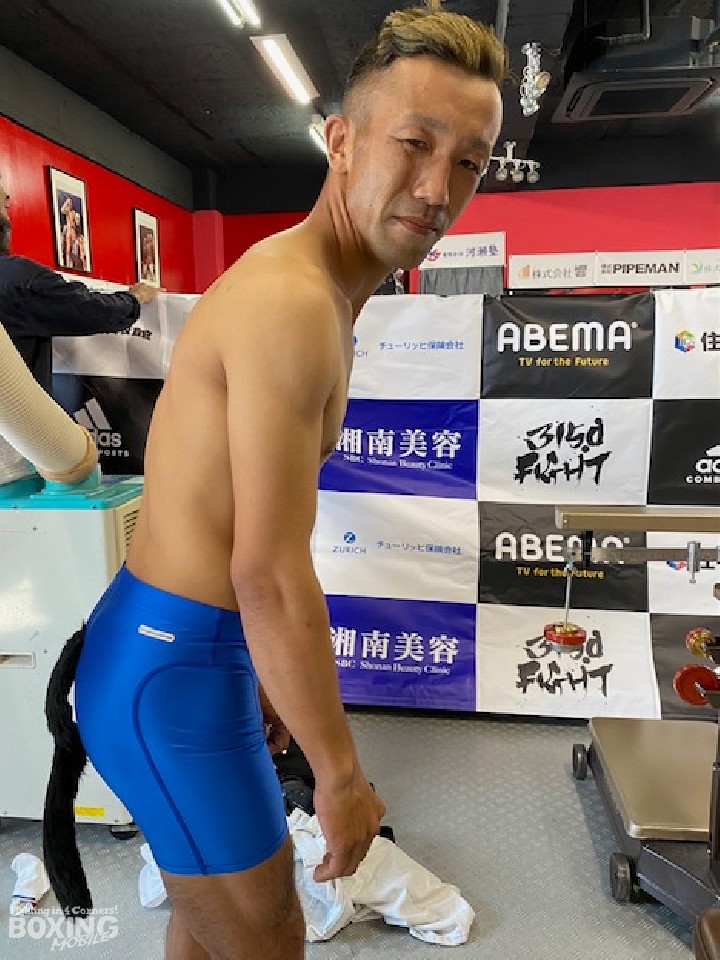 一方、福岡県北九州市から乗り込んできた石川は「ほぼ減量はしなかった」と、500gアンダーの61.5sでなんなくクリアした。今年4月に初回TKO負けし、グローブを吊る決意を固めたが、「ファイトマネーが良いし、相手が知名度があるヒロキングだと聞いて」と引退を撤回した。