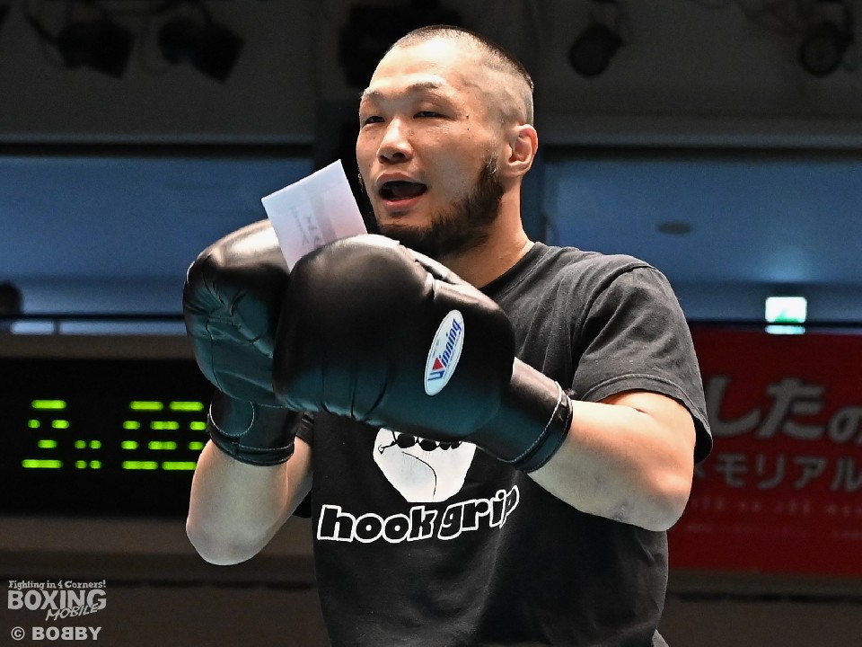 元日本ランカーの宮本知彰(29=一力)と、2分2ラウンドのスパーリングを行った宮崎氏は、ジリジリと距離を詰めて、左右のロングフックを繰り出すと、最後まで大振りのパンチを打ち込み、最後のリングを楽しんだ。