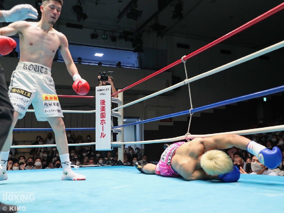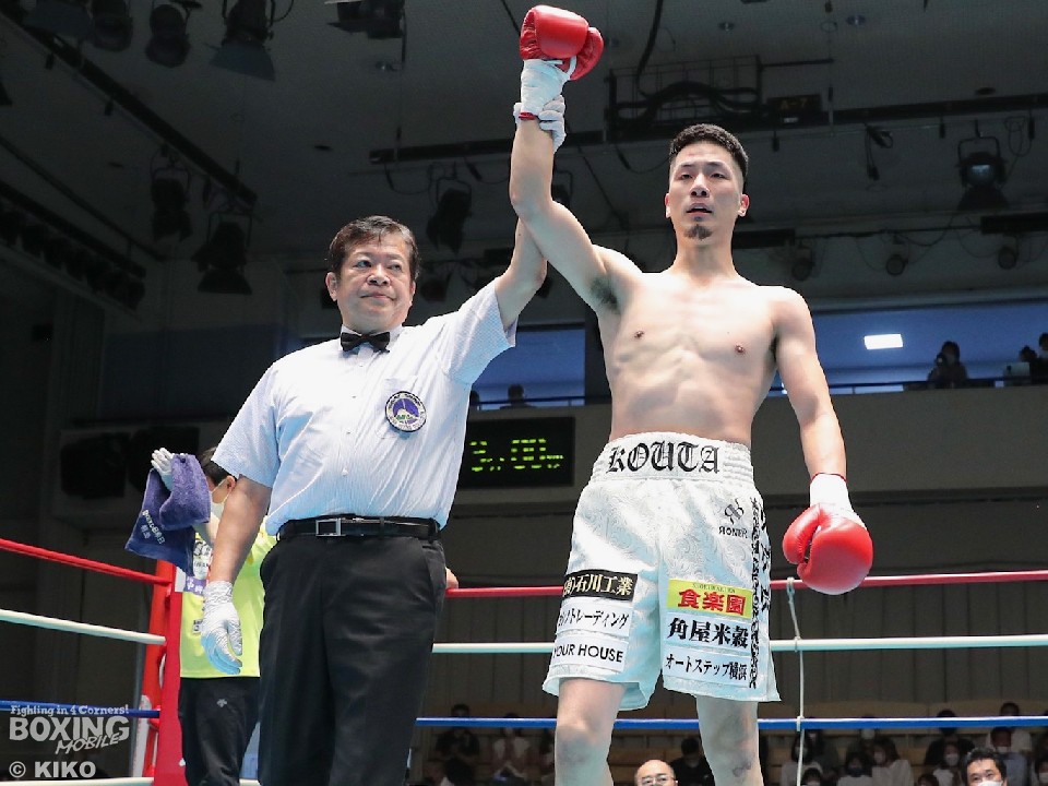 前日に豪快なKO勝ちで勝ち上がった、元世界王者の輪島功一氏の孫、磯谷大心(21=輪島功一スポーツ)が観戦する中、勝利したのは――。