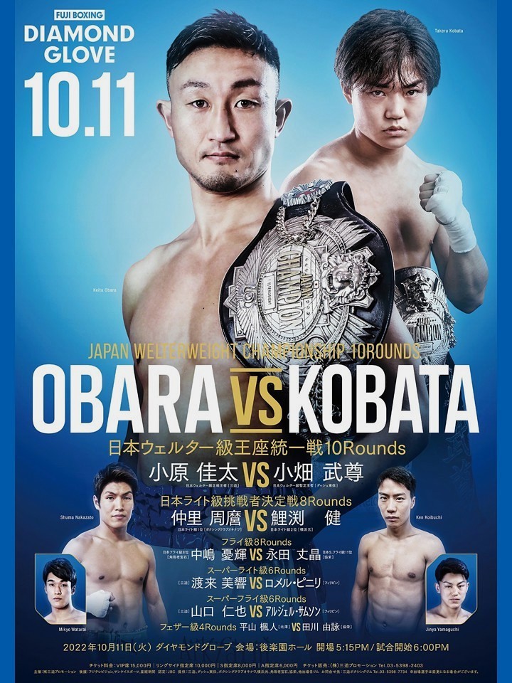 東日本新人王決勝戦でも注目が集まっているウェルター級は、日本王者の小原佳太(35=三迫)と暫定王者の小畑武尊(24=D東保)が、10月11日に王座統一戦を迎える。