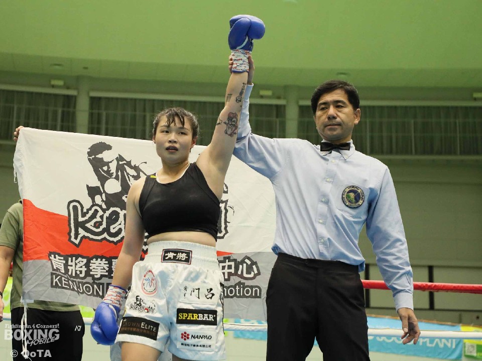 第1試合、女子ライト級4回戦では、呉沛儀(ウー・ペイイ/26=台湾)がシ・ウンギョン(29=本田F/韓国)と拳を交えた。呉が右オーバーハンドを決めて先手を奪うと、左右フックをヒット。2回、右ストレートで顔を弾き、フィニッシュした。