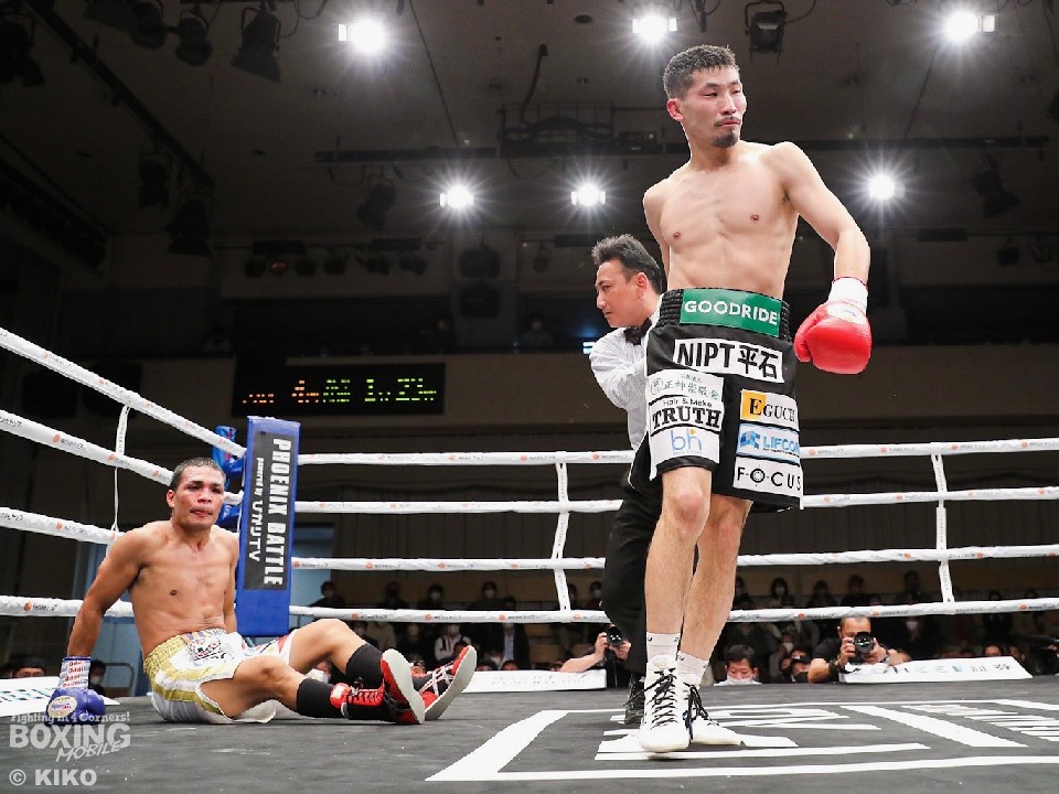 サウスポー岩佐が、ジャブを突きながら距離を探ると、2回には左ボディストレートを好打。強弱をつけたコンビネーションを決めると、返しの右フックにも冷静に対応した。4回、岩佐は上下の打ち分けから左アッパーでダウンを演出。セルバニアに10カウントを聞かせた。