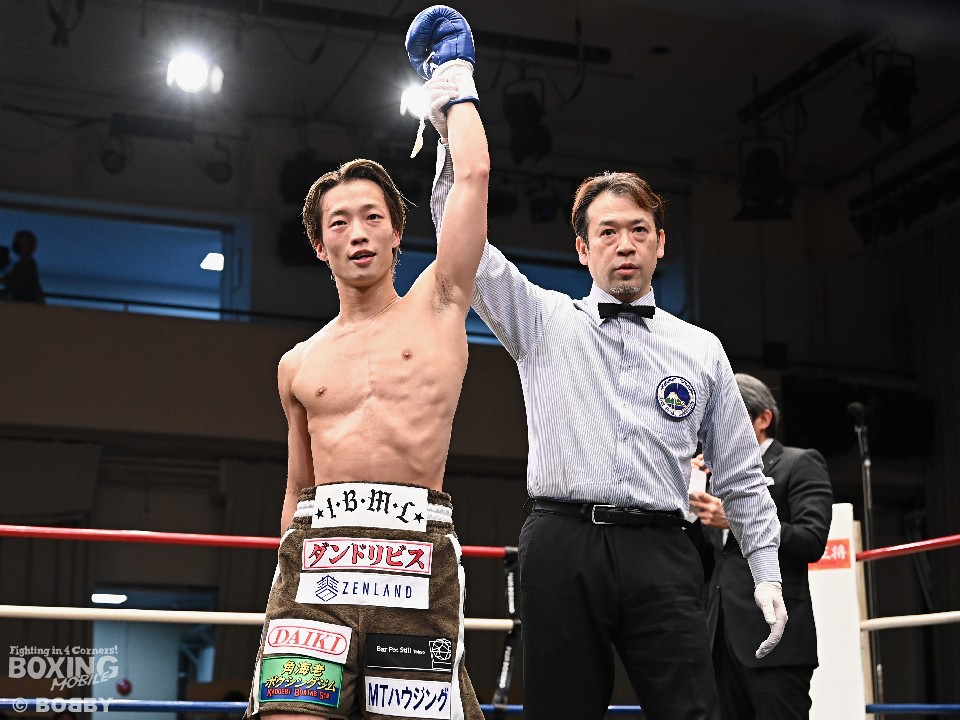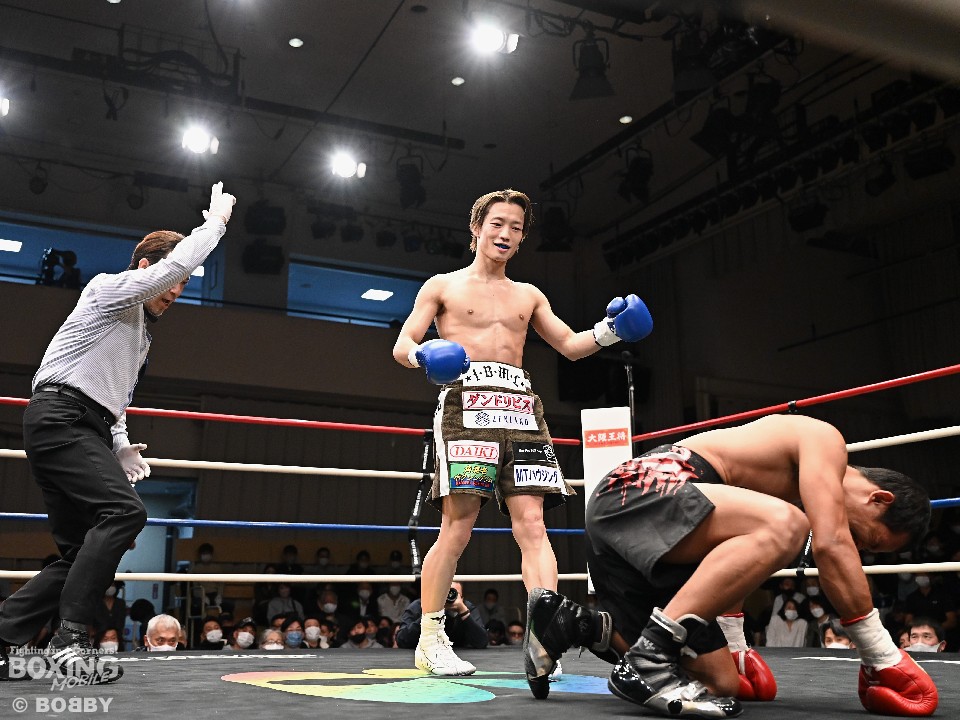 山内が、持ち前の強打を炸裂させて、圧勝した。ワンツーから左ボディを突き刺し、ダウンを奪うと、相手の右フックにも冷静に対応。左ボディで倒すと、最後は右ボディストレートをめり込ませて、フィニッシュした。