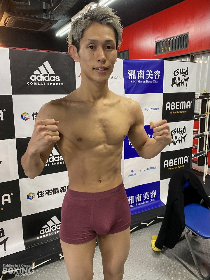 約1年3ヶ月ぶりにリングに上がる中村は、リミットちょうどの52.1sでパスした。スーパーフライ級で試合をするのは3年ぶりだが「3日前にリミットまで落とした。しっかりと落すことができた」と、万全のコンディションをアピールした。