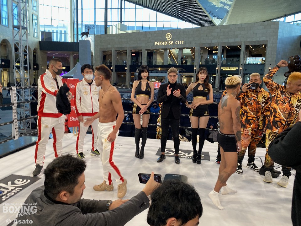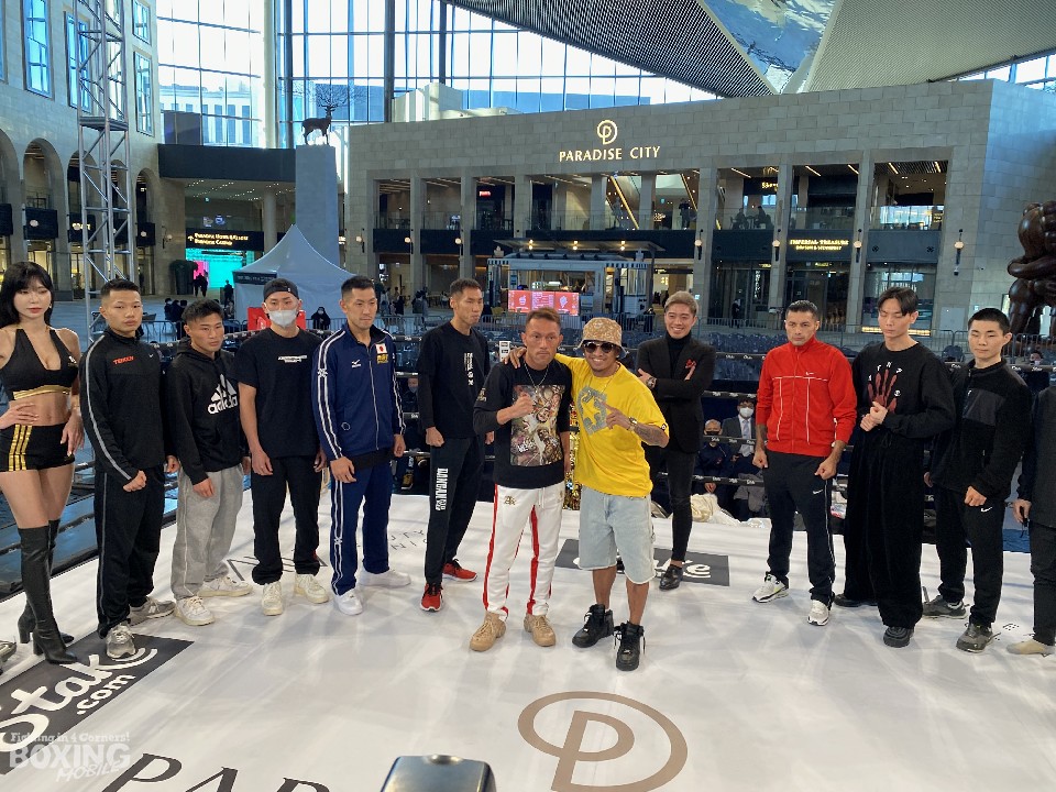 各国の取材に対して、「どちらかが倒して勝つことになる」と試合の展望を語ったカシメロだが、フェイスオフの撮影以外はリラックスした様子で、陣営の仲間たちと談笑することもあった。