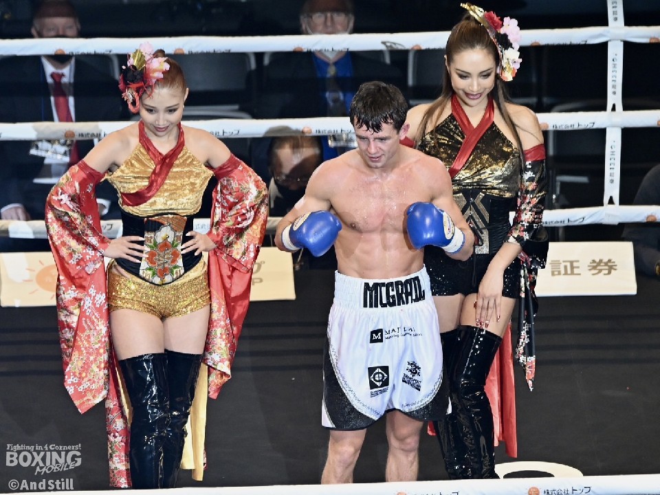 東京五輪イギリス代表選手として来日して以来、2度目の東京のリングに上がったマクレール。圧巻のKO勝利を挙げて、会見場に引き上げてきた。「日本に戻って来られて、日本の皆さんの前で戦えて嬉しい。今回良いカードばかりで、たくさんの人が見ている中で、試合ができて良かった。自分のプロモーションチームが素晴らしいメンツで、自分をより良い道に導いてくれる。タイトルも、チームが選んだものならやる。日本に戻ってきて、ベルトのチャレンジも考えている」と笑顔を見せた。「アリガトー、テンキュー」。