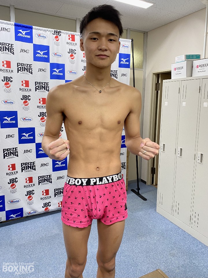スーパーフェザー級5回戦では、岩本星弥(19=JB SPORTS)と大谷新星(21=真正)が拳を交える。岩本は、スーパーフェザー級リミットちょうどの58.9s、大谷は、200gアンダーの58.7kgで計量を終えた。