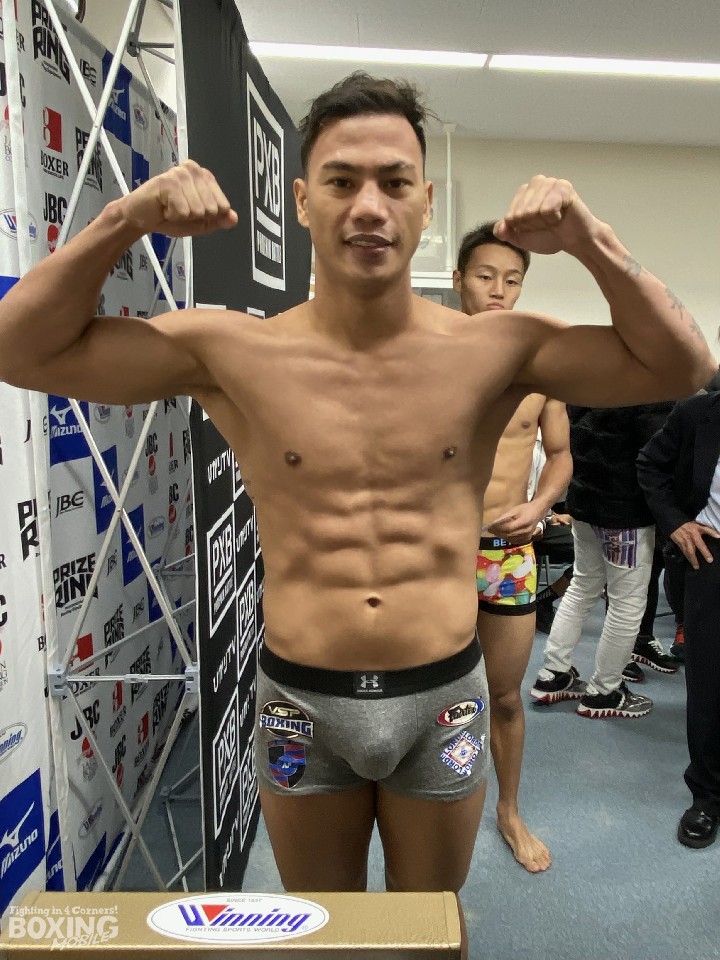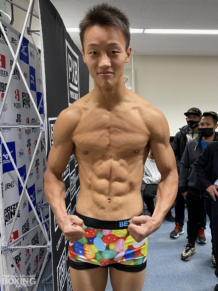 先に秤に乗った今永は、契約体重を200g下回る61.8sでクリア。計量後には「リカバリーを効率よくするため」と、ビタミンやミネラルなど4種類のサプリメントを摂取した。身長177pの今永に対し、スムガットは163pと低い。「思っているより小さかった。戦いづらそうだが、対応していく」と意に介さなかった。