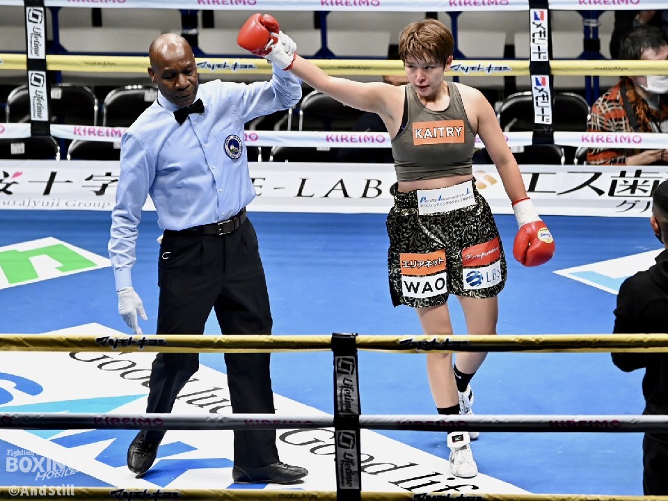 KO勝利を目指すとした伊藤が、勝負を決めたのは4ラウンド。距離を詰めてワンツーでダウンを奪うと、立ち上がったワッサナにパンチをまとめて、レフェリーストップを呼び込んだ。