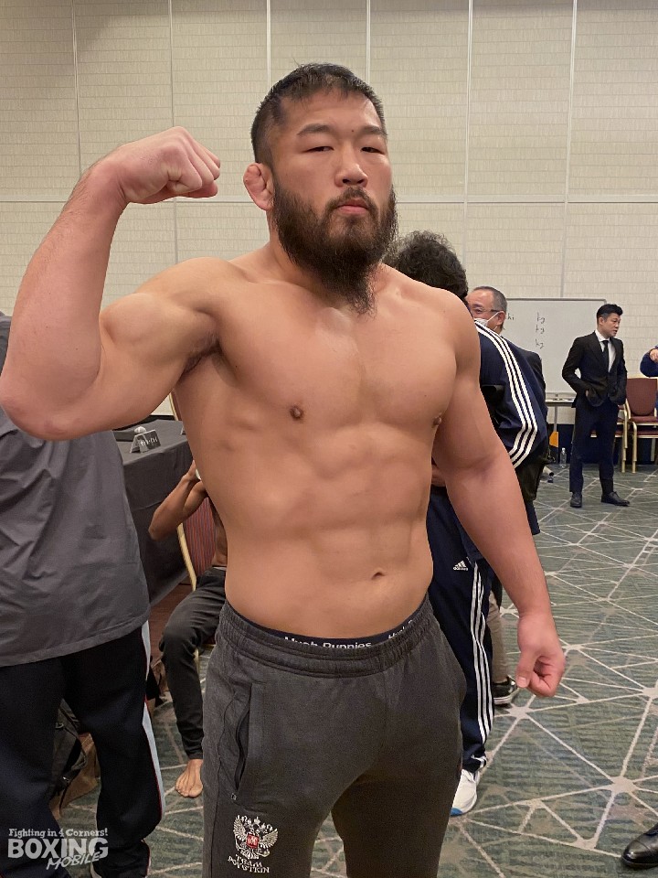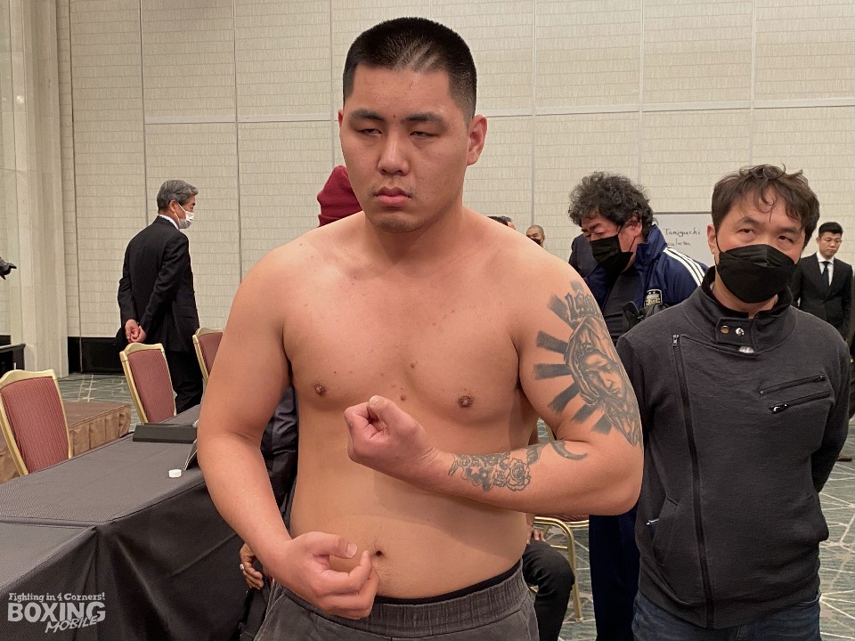 一方、初来日のハンは101.5sを記録した。「この試合に向けて、サウスポー選手とのスパーリングを重ねてきた。自信を持って戦う」と気を吐いた。