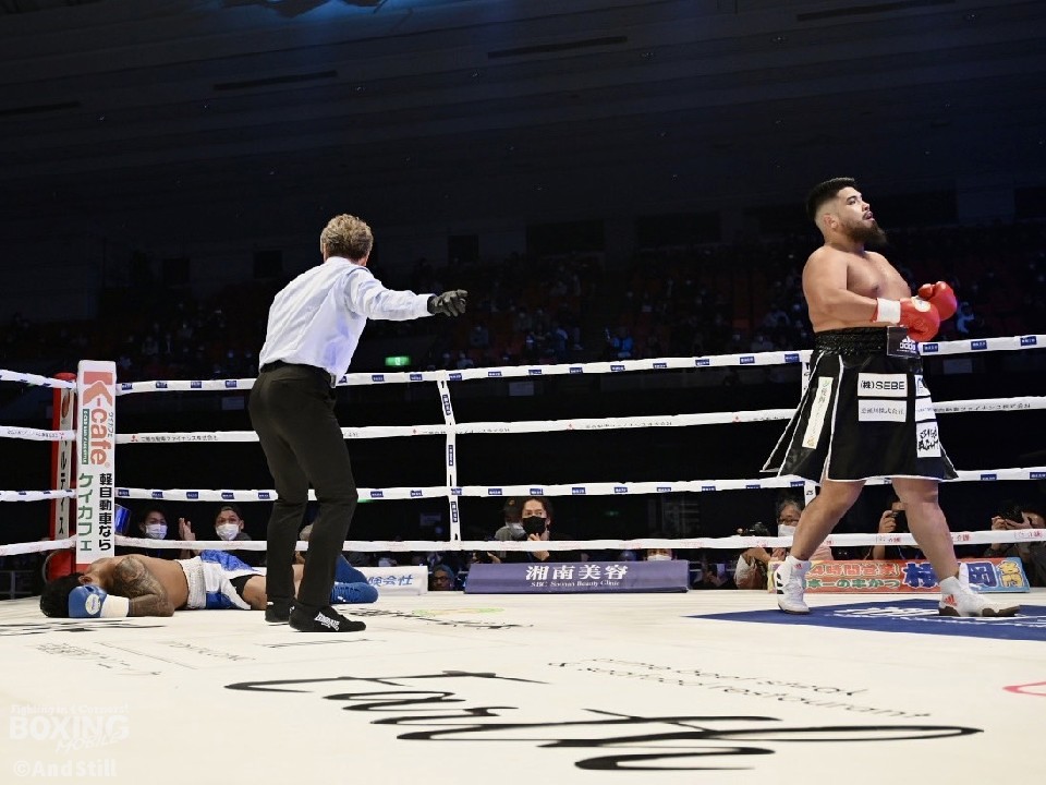 ヘビー級の日本チャンピオン但馬ブランドン ミツロ(KWORLD3)が6日、エディオンアリーナ大阪でノンタイトル戦に臨んだ。ABEMAのボクシングチャンネルでライブ配信された「3150 FIGHT Vol.4」。衝撃が会場を襲った。
