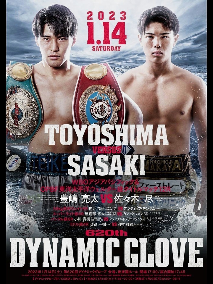 今年は各階級のチャンピオンやランカーが、世界のトップ戦線を目指して跳ねる年。直近では今週末、1月14日(土)のOPBF&WBO-APウェルター級タイトルマッチ。アジア2冠チャンピオンの豊嶋亮太(27=帝拳)が、KO率80%を誇る令和の倒し屋、佐々木尽(21=八王子中屋)の挑戦を受ける。