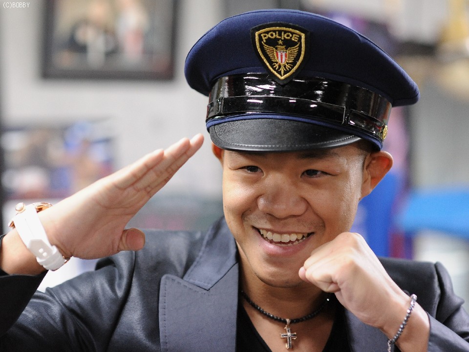 最後に興毅はスタッフが用意した警察官の帽子を被り、"クリーンな亀田ジム"をアピール。そして「対戦相手を逮捕しちゃうぞ(笑)」とジョークを飛ばし、会見を締めくくった。