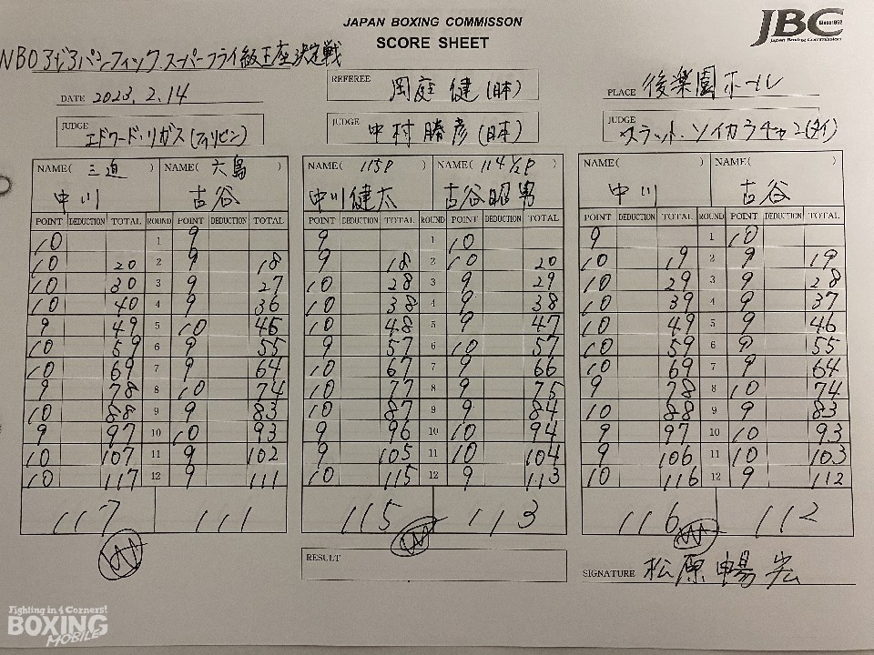 WBOアジアパシフィック・スーパーフライ級王座決定戦、同級1位の中川健太(37=三迫)対同級12位の古谷昭男(25=六島)が14日、後楽園ホールで開催された「ダイヤモンドグローブ」のメインイベントで行われた。