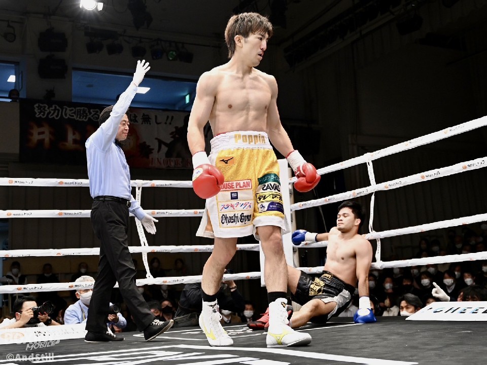 井上がブランクを感じさせない動きで、復活を印象付けた。初回からサウスポー井上が、シャープなジャブから左ボディストレートを好打。ラウンド終了間際には、左ストレートでダウンを奪った。2回、相手の右フックを冷静に対処した井上は、左ショートカウンターで、2度目のダウンを演出。レフェリーは、カウント途中でストップした。