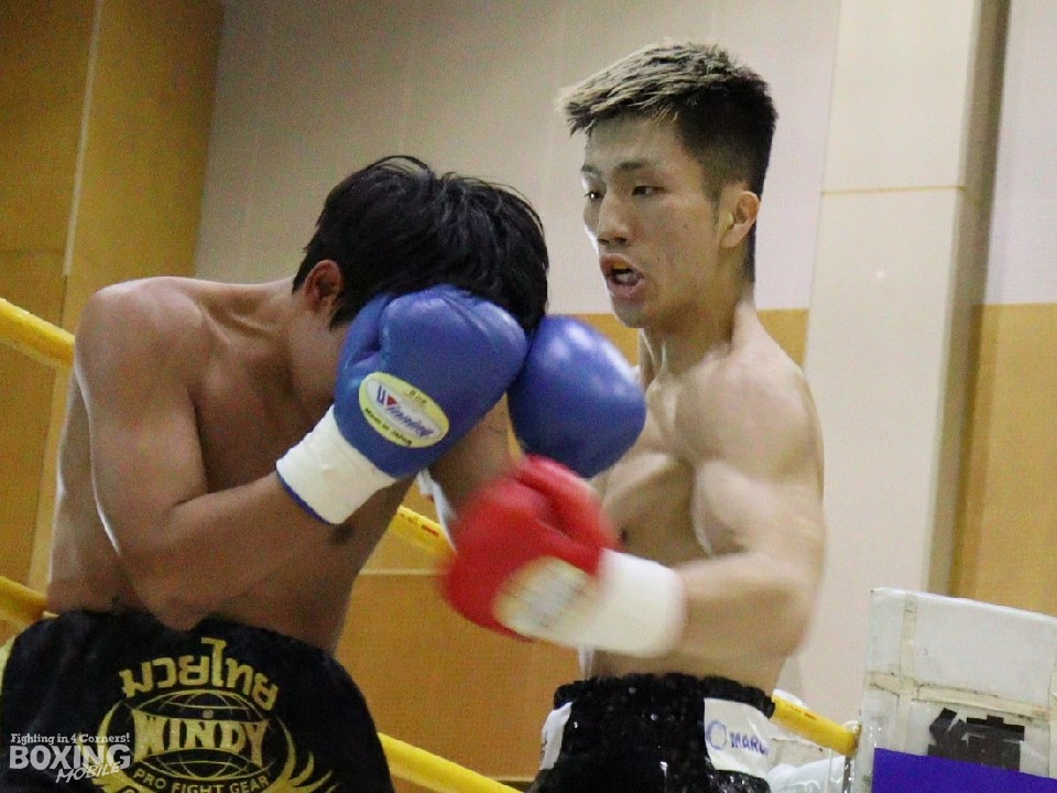 スイッチヒッターの岩川は、この日はオーソドックススタイルでスタート。前の手で距離とタイミングを測りながら、右オーバーハンドをヒット。2回には上下にコンビネーションで攻め立てた。3回、コーナーに詰めて連打を繰り出したところで、レフェリーが試合をストップした。