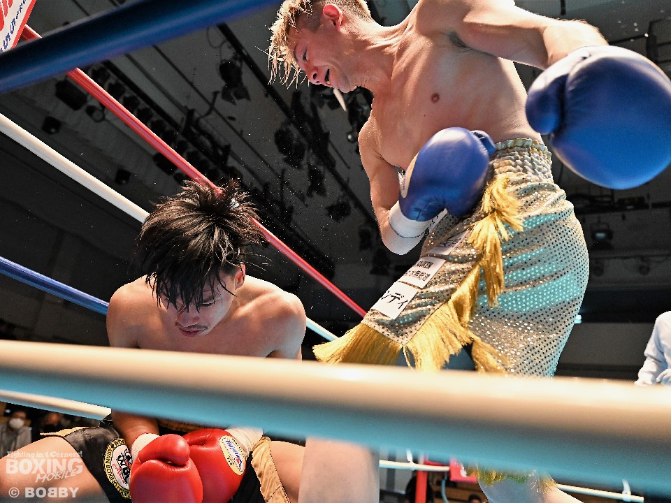 斉藤が強烈な左ボディで試合を終わらせた。ジャブから丁寧に組み立てた斉藤は、2回になると距離を詰めて、左ボディを好打。ペースを握ると、左ボディを突き刺しダウンを演出。ポアンチャイに10カウントを聞かせた。