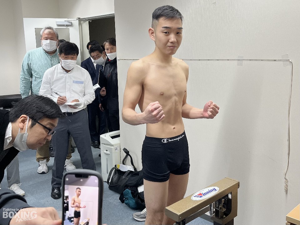 永田と同様にリミットぴったしの50.8キロで計量をクリアした山内は「自分のパンチを受けたことがないんで、(自分のパンチ力は)わかんない。人とやって、硬いとか、あると言われる。ダウンを取ったり倒して勝てば、パワーを見せられる。勝てば、なんでもいい。倒せたら最高」と必勝宣言。角海老宝石ジムの会長に用意してもらったという「おじや」を食べながら笑顔を見せた。
