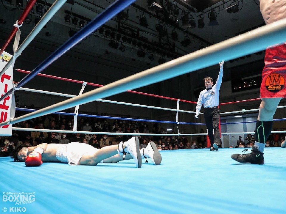 「ゴールデンチャイルド135」が開催された31日、日本スーパーフェザー級9位の向山大尊(ハッピーボックス)と日本フェザー級10位の中川公弘(ワタナベ)がフェザー級8回戦で対決。衝撃の結末に後楽園ホールが静まり返った。