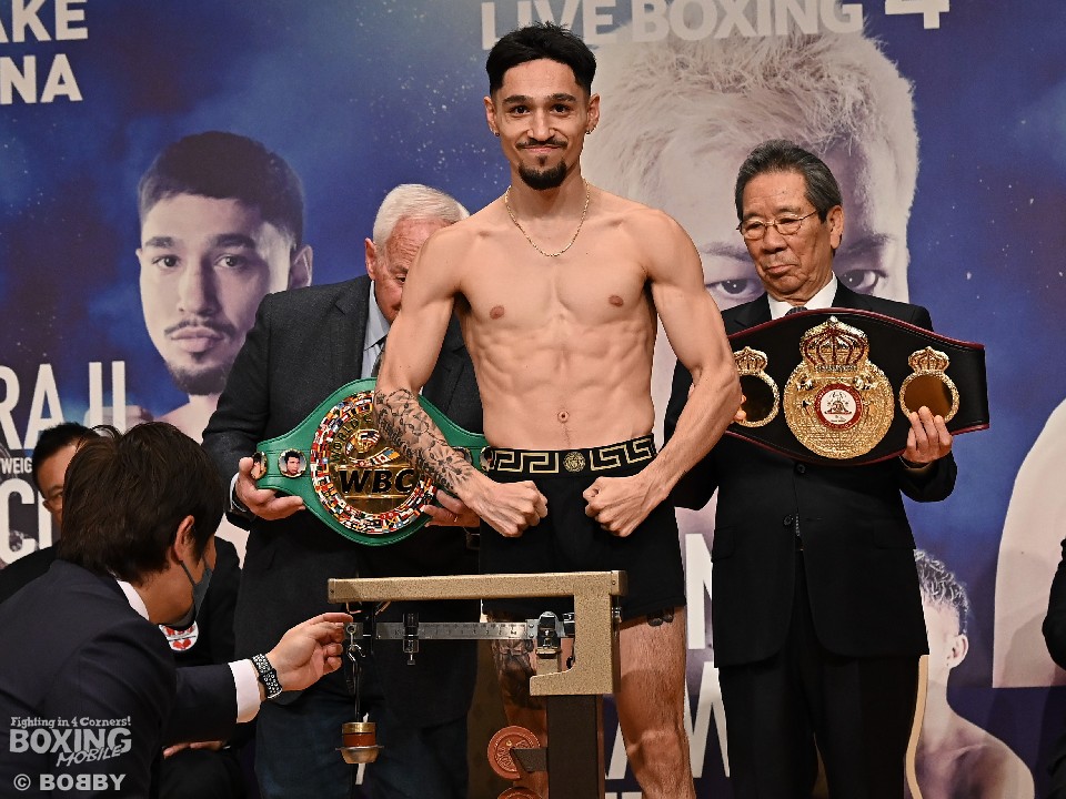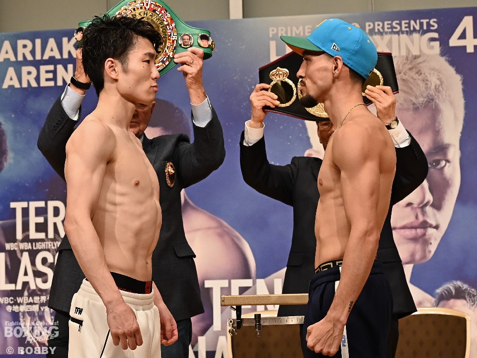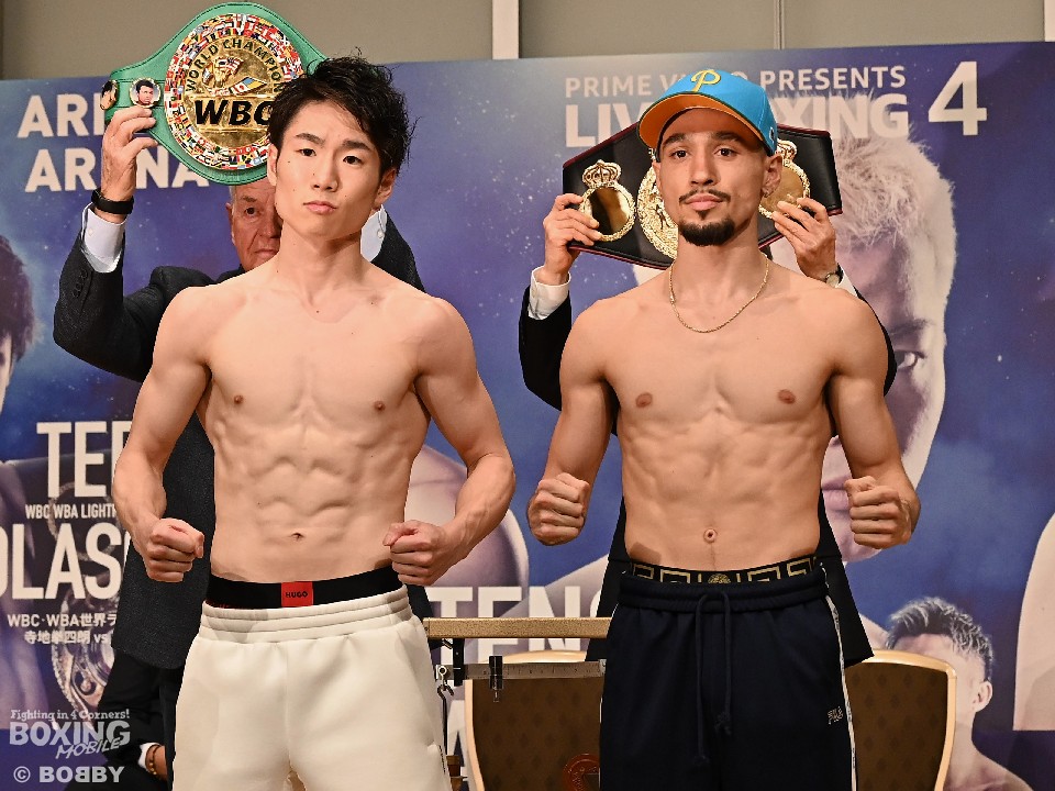 「Prime Video Presents Live Boxing 第4弾」のメインイベントに出場する、WBA(世界ボクシング協会)・WBC(世界ボクシング評議会)ライトフライ級統一王者の寺地拳四朗(31=BMB)と、挑戦者でWBA4位・WBC15位・WBO12位のアンソニー・オラスクアガ(24=米国)が7日、都内のホテルに用意された特設会場で、前日計量を終えた。