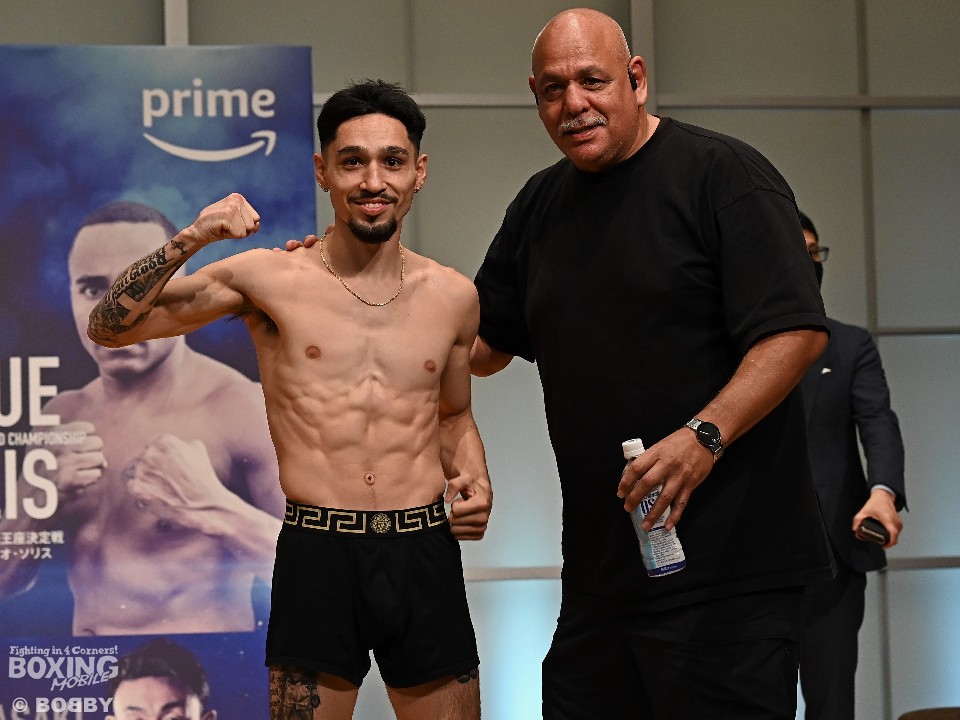 一方、わずか6戦目で世界初挑戦するアンソニーは、計量台に上がると400gアンダーの48.5kgでパス。両腕の力こぶを見せて、ベルト奪取に自信を示した。