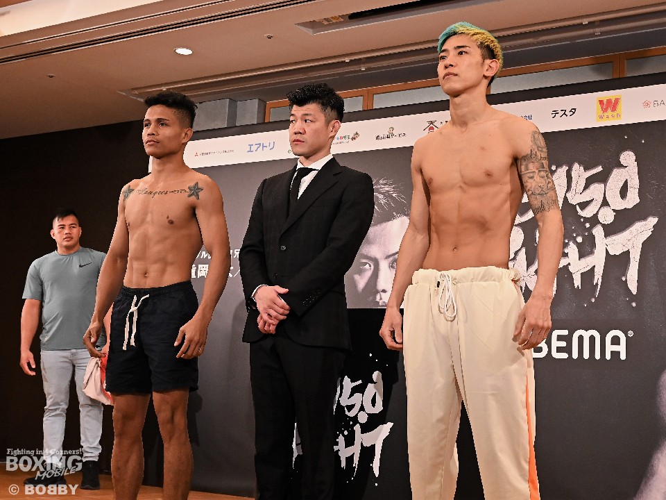 先日ボクシングに転向した那須川天心(24=帝拳)との対戦を望んだのは中川麦茶(34=一力)。「僕とやれば、実力がわかる」とキックから転身初戦で、判定勝利を収めた那須川に対して「スピードがあった。距離感の適応もできていた」とリスペクトを口にした。明日の試合は、5年前にフィリピンでスパーリングをしたこともあるロビン・ラングレス(27=比)が相手だが、「あの時はまだ弱かったので、やられたが今回は借りをかえす」と意気込みを語ると、ラングレスは「重要な試合になる。どっちが強いか、弱いかが分かる。スパーをやってるので、動きは把握している」と返した。
