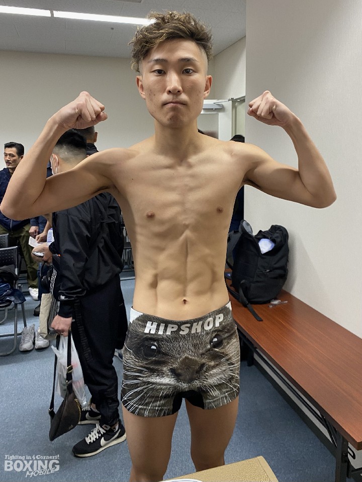 拳を交える長谷部は、リミットちょうどの47.6kgでパスした。「これまでで一番仕上がった」と自身の表情を浮かべた長谷部。2ヶ月半かけて12kgの減量に成功した。ミニマム級では164pと身長が大きく、体格の利を活かすつもりだ。