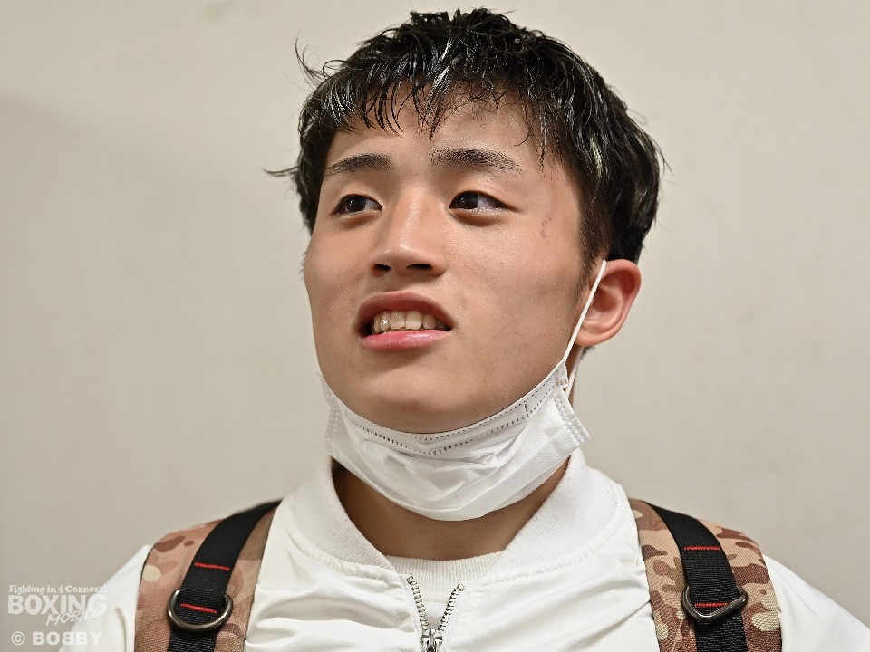 今年の東日本新人王ミニマム級にエントリーしている杉浦。ミニマム級の優勝候補は、昨日(26日)、デビュー戦を判定勝ちした北野武郎(18=大橋)。元日本ライトフライ級1位の北野良氏の長男は、評判通りの強さを見せた。杉浦は「北野選手が強いと言われているが、自分の名前も知ってほしい」と拳を握りしめた。