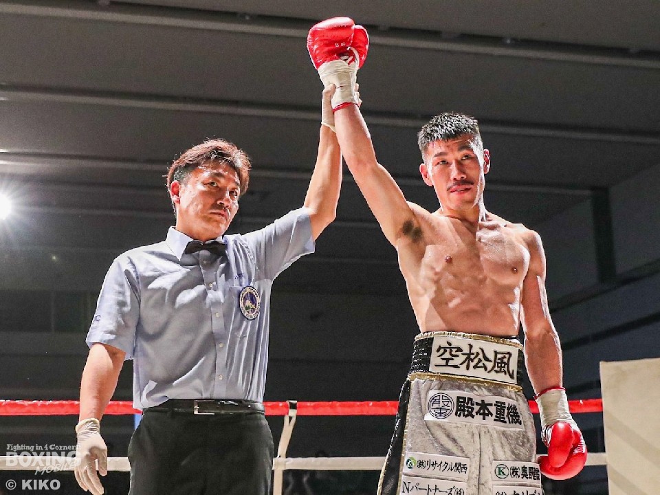 セミファイナル、辻永遠(23=勝輝)と満生敦巴(24=オキナワ)がスーパーバンタム級4回戦で拳を交えた。開始から辻がリズム感のある攻撃を見せると、右カウンターでダウンを演出。再開後、右フックでキャンバスに沈めた。