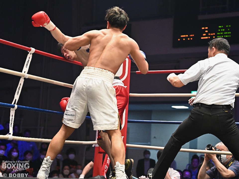 積極的な攻撃でペースを握った伊吹だが2回、小林の左フックを浴びて反撃を許した。それでも、ギアを上げて左フックで効かせると、パンチをまとめてレフェリーストップに持ち込んだ。
